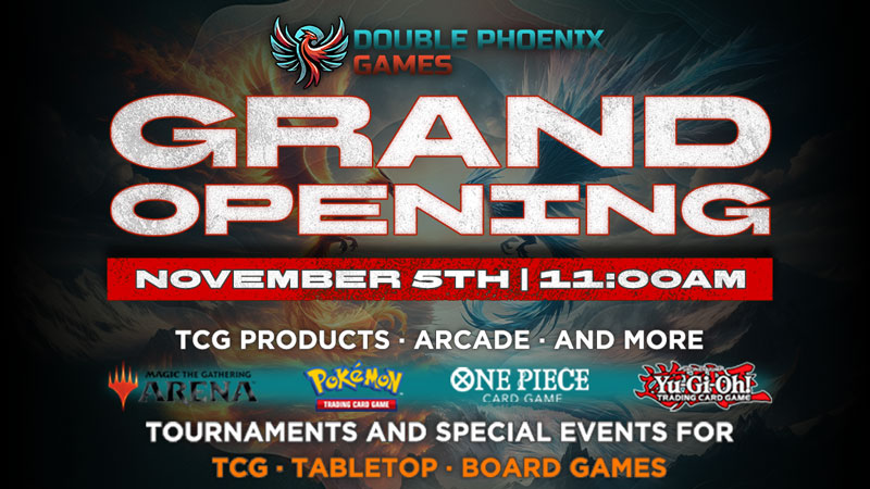 Double Phoenix Games 1583 Thousand Oaks Dr., Suite 113, San AntonioDouble Phoenix Games invites you to our exciting grand opening event on November 5th, 2025 at 11AM. Visitors will get a first look at the shop and have access to TCG products from Magic: The Gathering Arena, Pokémon, One Piece, and Yu-Gi-Oh!